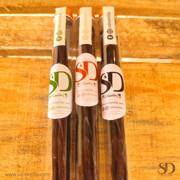 D’excellente qualité. Des gousses de vanille gourmet ou TK (vanille noire) avec un taux d’humidité variant entre 25% et 35%. Les gousses sont non fendues.
